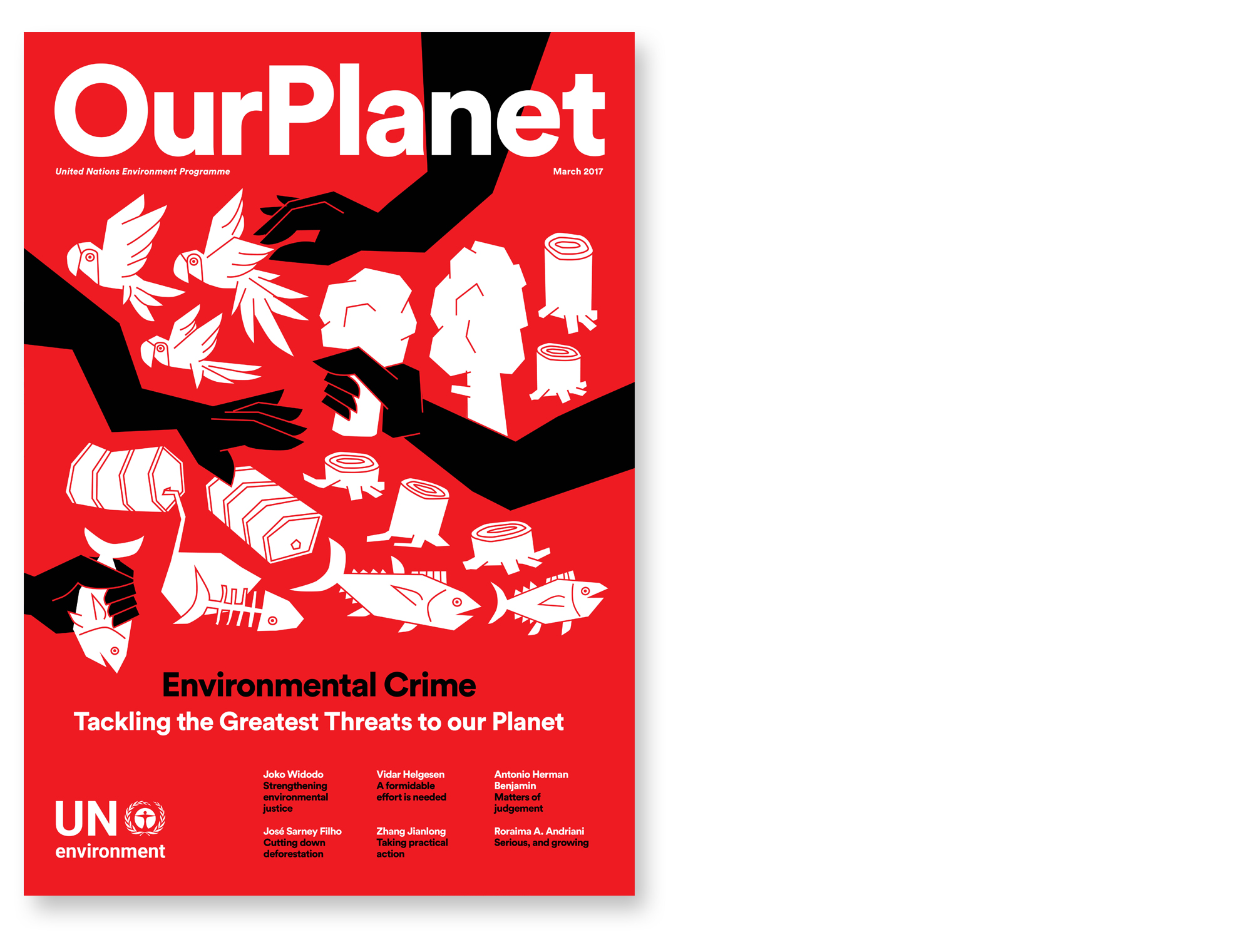 Cover illustration, infographic and editorial design for UN Environments flagship magazine Our Planet. The magazine is available in print and online.