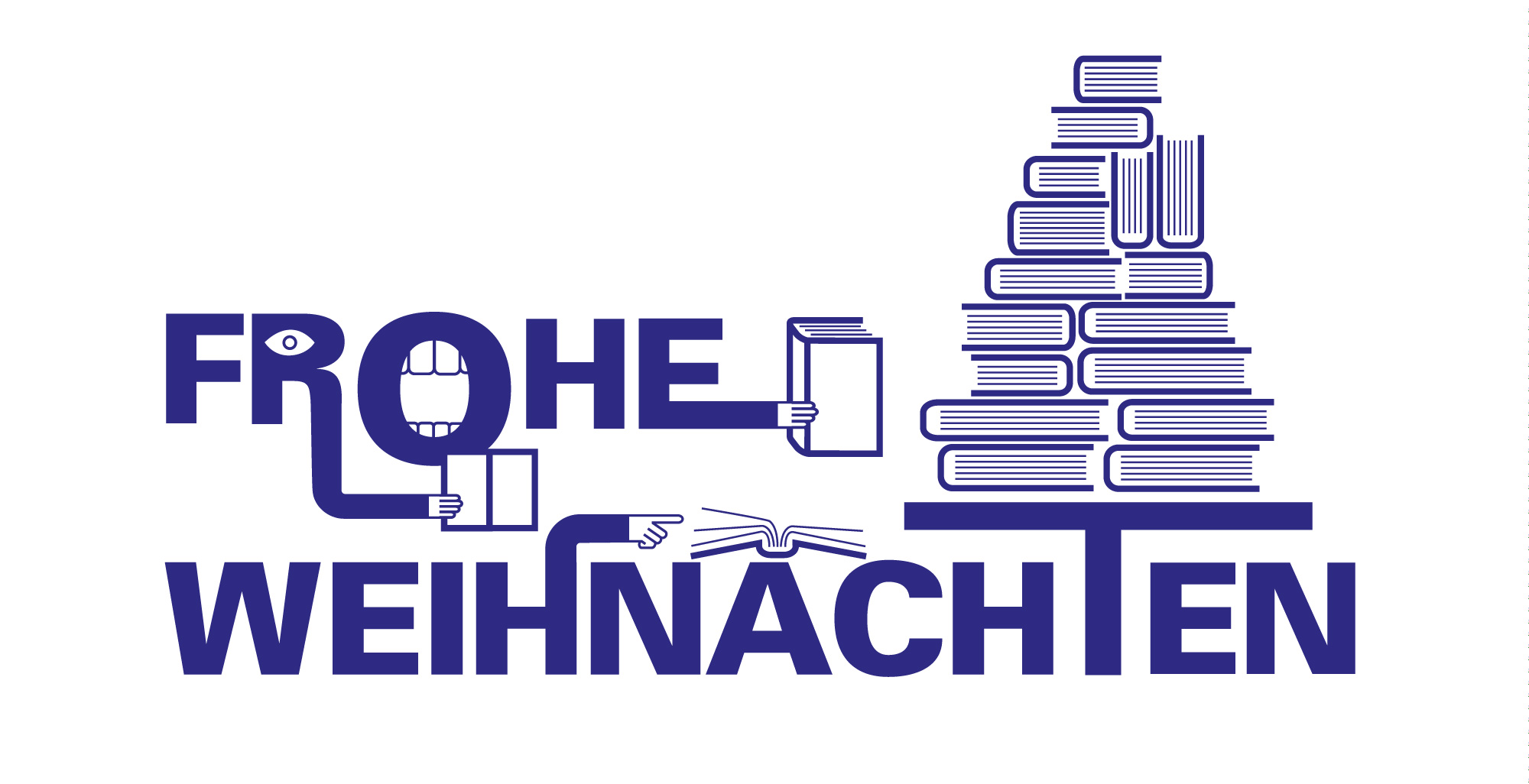 For many years I am designing several print products for the „Stadttbibliothek Karlsruhe“ (public library of Karlsruhe). I use a simple typeface modified with illlustrations which can be used for posters like the e-book poster, flyer, christmas card and signage.