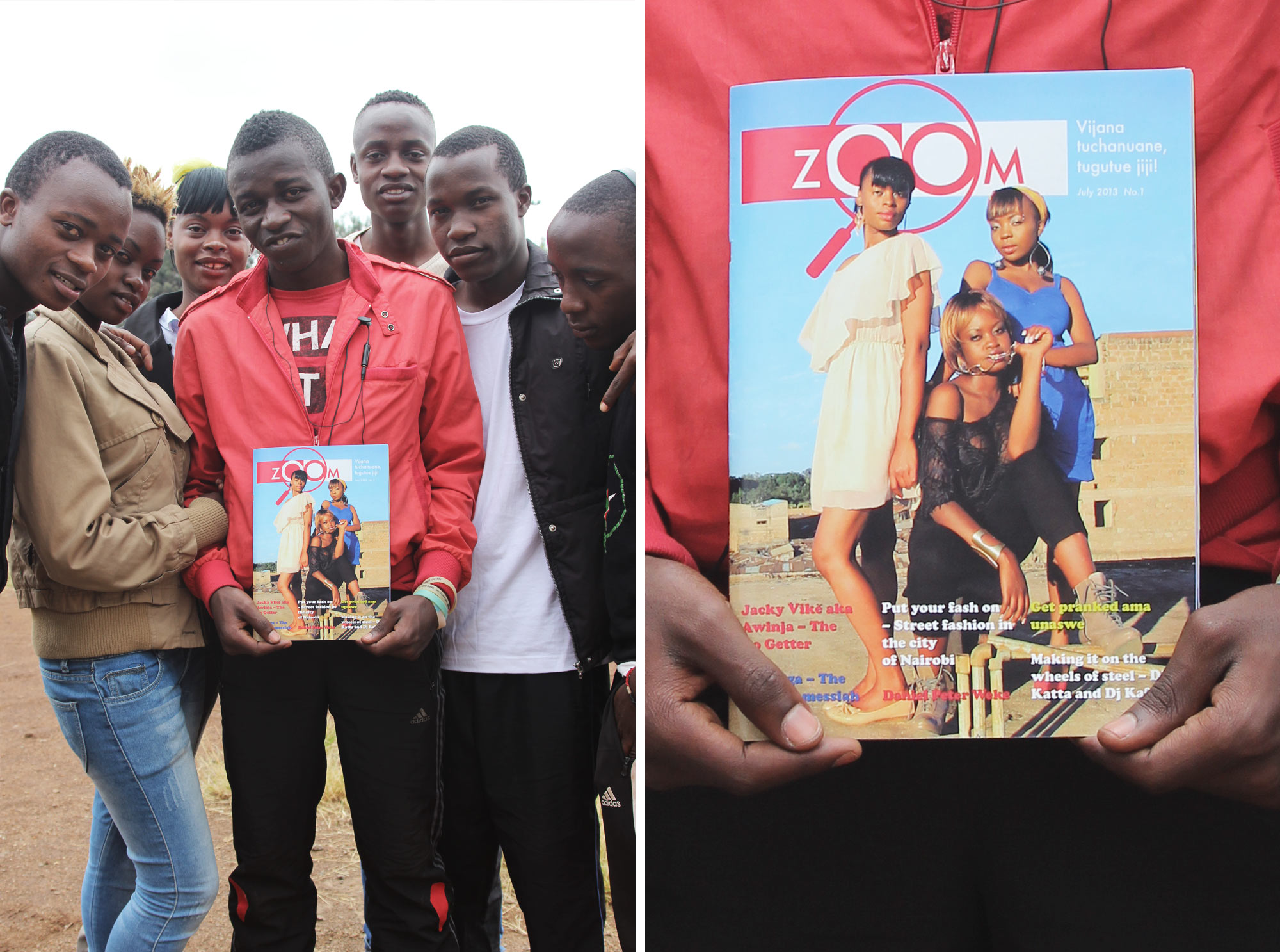 Together we decided to create a platform for youth called ZOOM magazine which we launched in June 2013. ZOOM magazine fills a gap in the Kenyan media scene: our magazine is made by youths for youths, written in English and Sheng. Sheng is a Nairobian youth language based on Swahili, mixed together with English, Luo, Kikuyu and other Kenyan languages. ZOOM showcases new talents and speaks with a fresh, bold voice about social issues faced by young adults. The magazine got recognized in several media e.g. social media week, arte creative, Deutschlandfunk and Sueddeutsche.